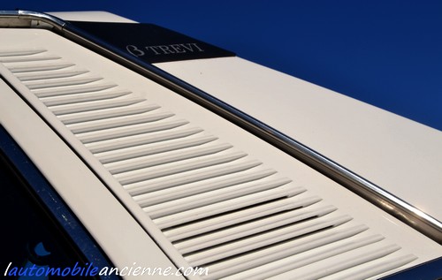 Aussi, pour une voiture présentée en 1980, Lancia restait fidèle à certains équipements anciens, comme les pare-chocs en inox quand tout le monde passait au plastique noir (et tant mieux pour nous, amateurs d’anciennes). Aussi, la custode interpelle, coupée en son milieu par une gouttière, un côté avec un logo « Beta Trevi », l’autre avec un morceau de métal et des persiennes. Un élément kitch, et peut-être en trop ? En tout cas, on sent la patte des designers qui auraient souhaité y mettre une vitre de custode mais qui ne l’ont pas pu, sans doute pour préserver la rigidité de la caisse ?