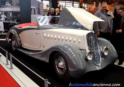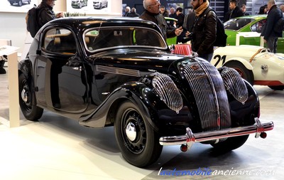 Échappons-nous des vendeurs de pièces et partons du coté des stands des constructeurs automobiles, le premier est celui de Peugeot, qui cette année fête beaucoup d’anniversaires. Le stand est tenu avant tout par divers clubs de modèles représentés pour l’occasion, de la Peugeot 402 à la Peugeot 604, en passant par la 204 et la 403. L’aventure Peugeot est bien évidement présente avec deux véhicules, une Peugeot Type 163 retrouvée emmurée dans la région de Lyon, ainsi qu’une Peugeot 205 Turbo 16 aux côtés d’une Peugeot 208 GTI 30Th. On note aussi la présence d’une sublime Peugeot 401 Cabriolet carrossée par Crouzier dont la ligne est des plus surprenantes.