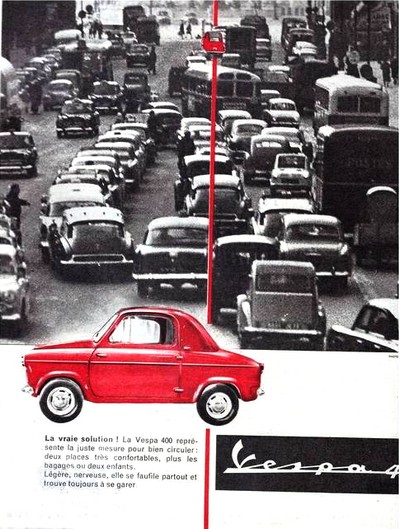En Italie, dans les années 1950, le mode de déplacement en vogue est le scooter, petit véhicule à deux roues équipé d’un petit moteur et d’un variateur de vitesse mécanique. Grâce à tout cela, le scooter est le véhicule qui s’avère le plus pratique pour déambuler dans les petites rues des villes italiennes; et qui plus est, reste bon marché, bien plus que les voitures populaires d’alors avec la Fiat 500 Topolino en tête. Mais Fiat prévoit de renverser cela avec la présentation de la petite Fiat 500 en Juillet 1957, d’ailleurs le constructeur italien pense faire de cette voiture une véritable alternative aux deux-roues. Si les premiers mois de cette voiture restent hasardeux au niveau des ventes, Fiat corrige rapidement le tir pour proposer dès Octobre 1957 une voiture répondant plus aux attentes des italiens. Le succès vient donc, cannibalisant les ventes de scooters…