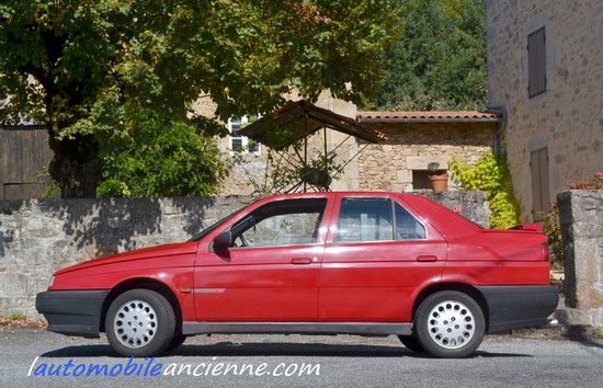 Dans les années 1980, ce n’était pas la joie chez Alfa Romeo, la marque était contrainte à des restrictions budgétaires pour assurer sa survie et ne pariait que sur des modèles anciens, certains avaient encore la cote comme l’Alfeta GTV; quant aux berlines, la 33 comme la 75 avaient été réalisées sur une base ancienne sur laquelle était greffée une carrosserie moderne. Cela est d’avantage marqué sur la 75 car si sa ligne attire les clients, ses qualités intrinsèques avaient de quoi les faire fuir… A cela rajoutez la 33 qui est en traction (comme l’Alfasud dont elle hérite la base) et vous comprendrez facilement le déclin de la marque à cette époque.